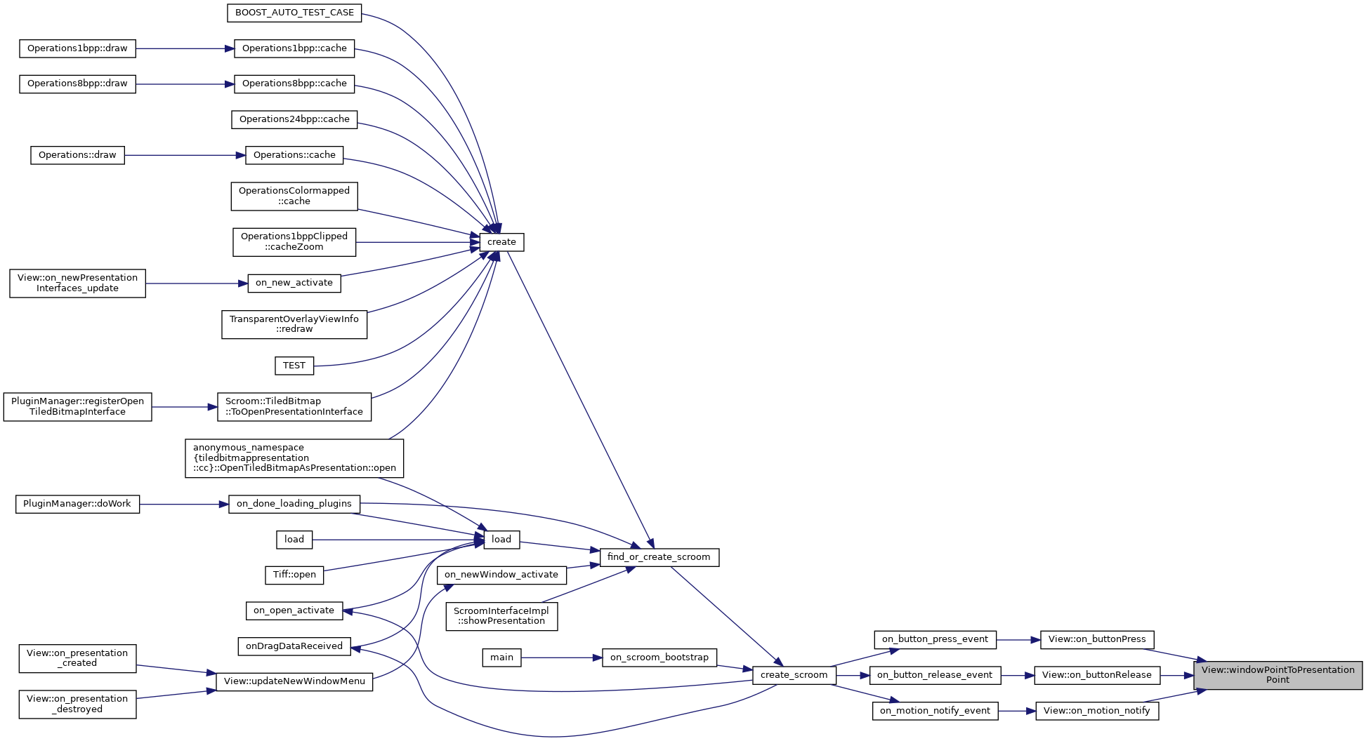 Scroom::Utils::Point< double > windowPointToPresentationPoint(Scroom::Utils::Point< double > wp) const